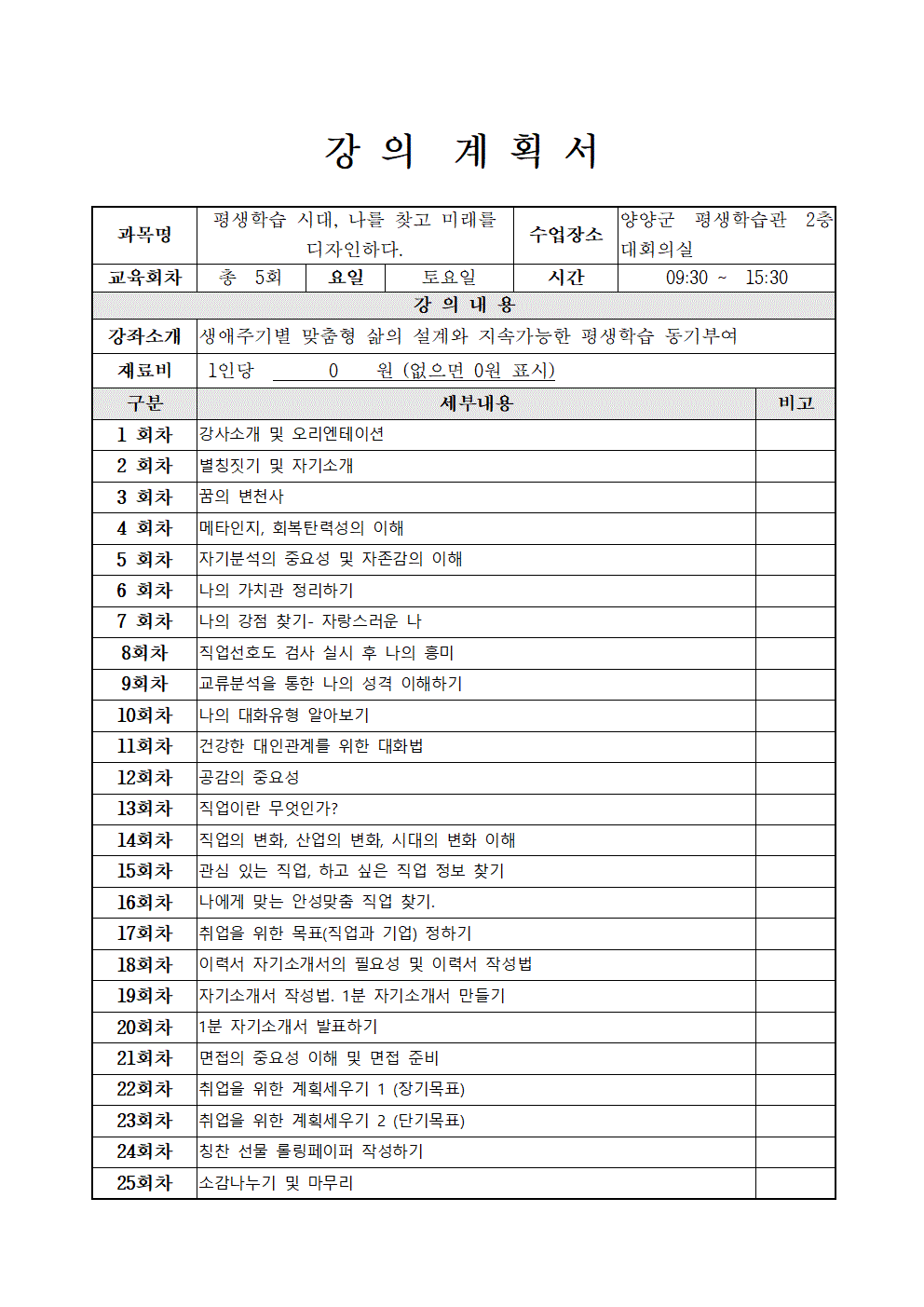 양양군 평생학습관의 학습프로그램 및 강좌관련 컨텐츠를 안내합니다.